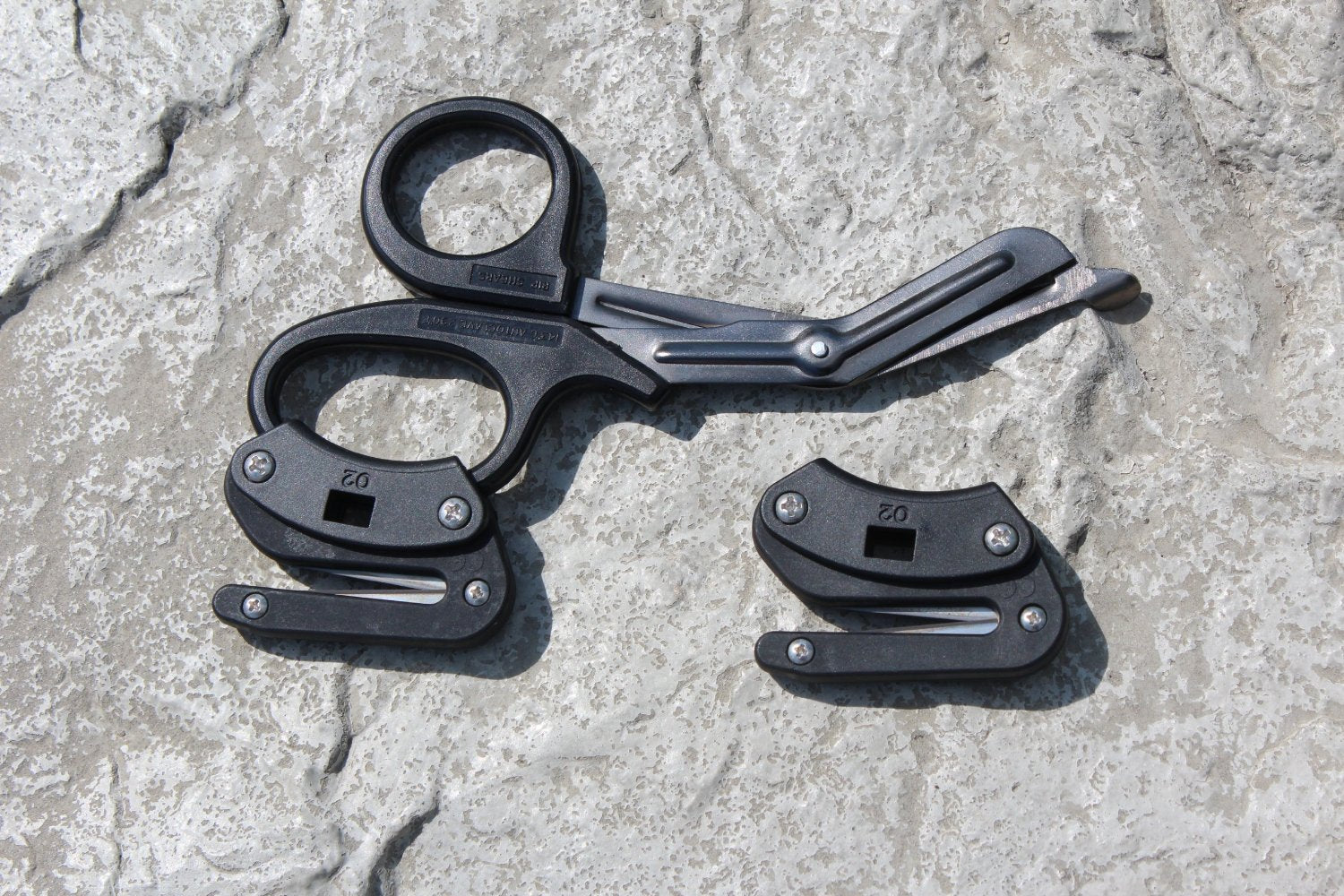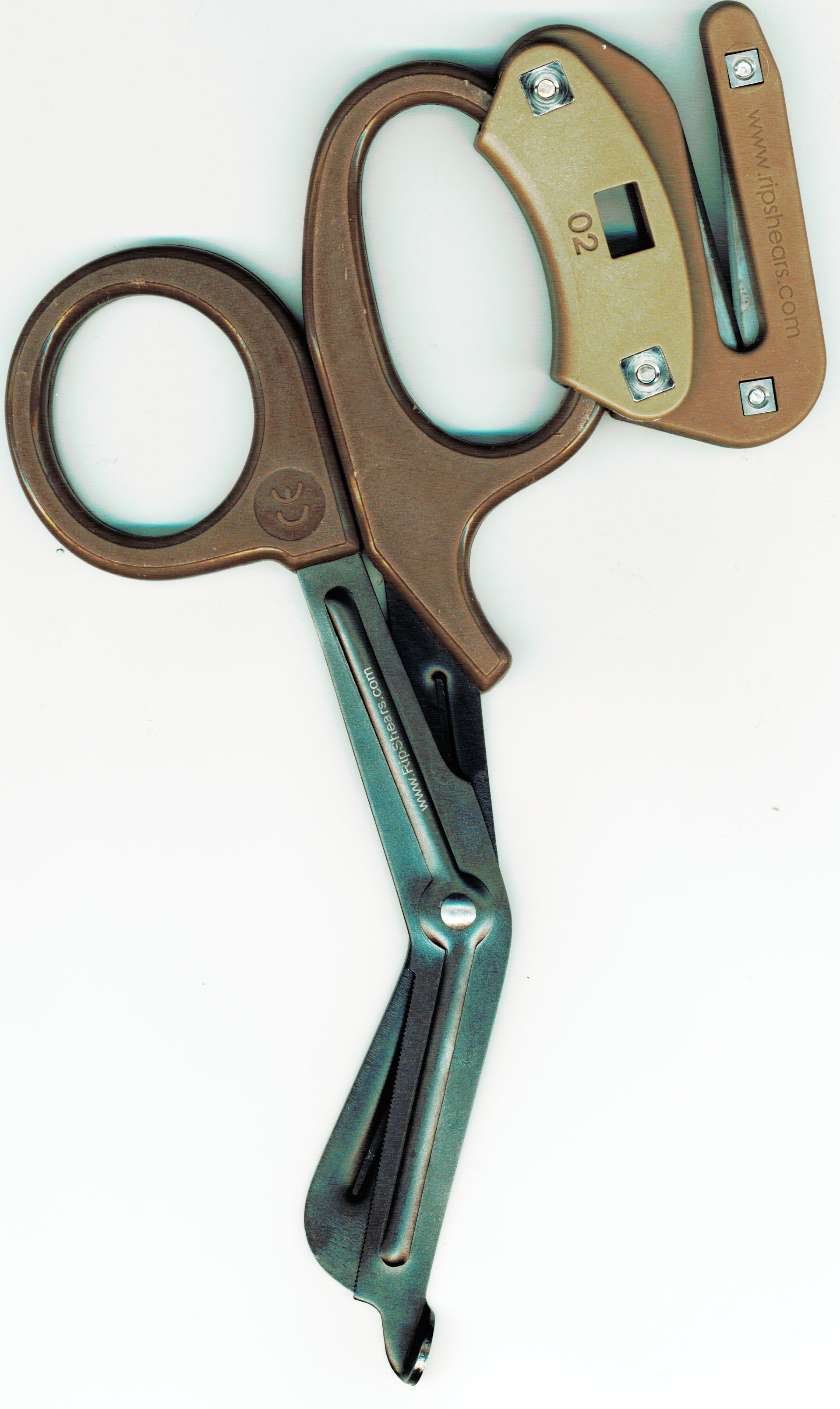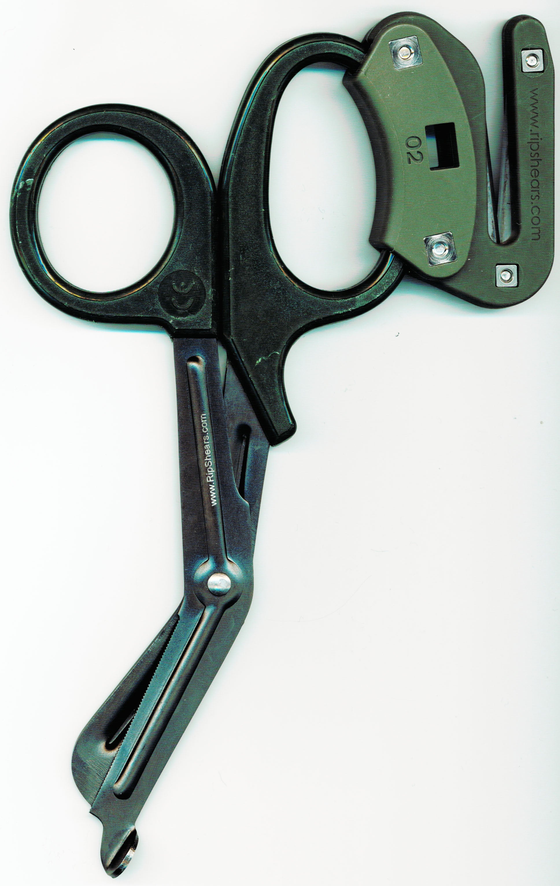 RIPSHEARS will easily slice through multiple layers of clothing, denim, leather, neoprene wetsuits, aramid textiles (Nomex, Kevlar, etc.), chemical biological and radiological suits (CBRN), bandages, sports wraps, plastic packaging, seat belts, tactical nylon webbing, and much more! the RS-2 RIPPER features an integrated O2 wrench, stainless steel hardware, and our proprietary, user-replaceable DLC-coated 440A stainless steel razor blades.