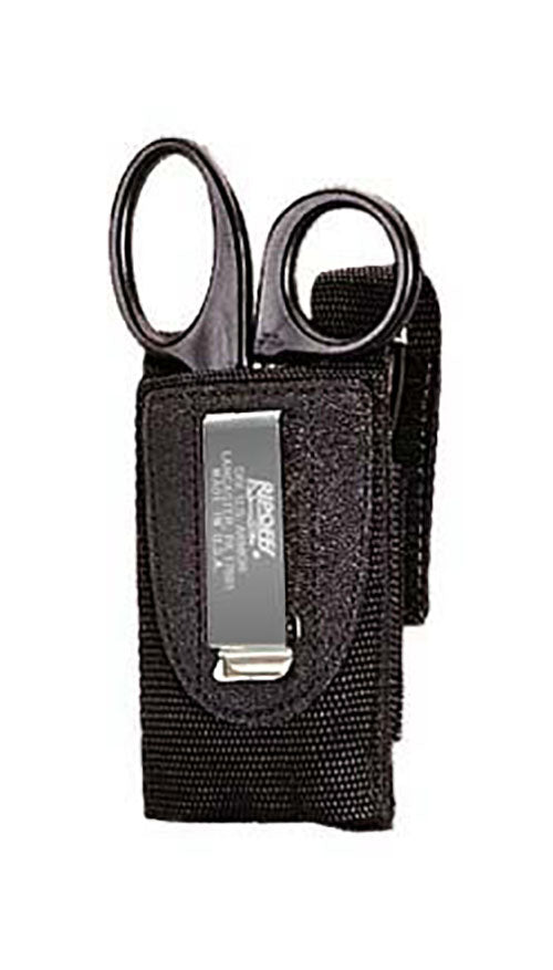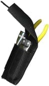 Ripoffs BL/CO-7 Clip-on three pocket Tool Holster/Tool Case, fits a large multitool or lockback knife measuring 5 inches by 1.25 inches by .63 inches in one pocket, a Mini Maglite 2AA or other 2AA flashlight up to .75 inch barrel in an open bottom pocket and pliers, wire strippers/crimpers or scissors in a 2.75 inch by 4.5 inch slash pocket. Other tools with similar measurements. Uses Ripoffs’ Proprietary Spring Steel Clip.